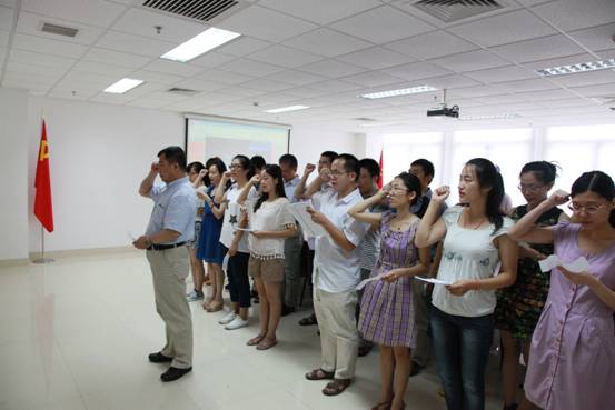 7月1日,值此建党92周年之际,城市环境研究所党委组织新党员举行入党宣誓仪式。仪式在庄严的《国际歌》中拉开帷幕,在党委副书记(主持工作)蔡澎同志的带领下,新党员进行入党宣誓,老党员重温入党誓词。在所的新党员和部分党务干部二十余人出席了宣誓仪式。