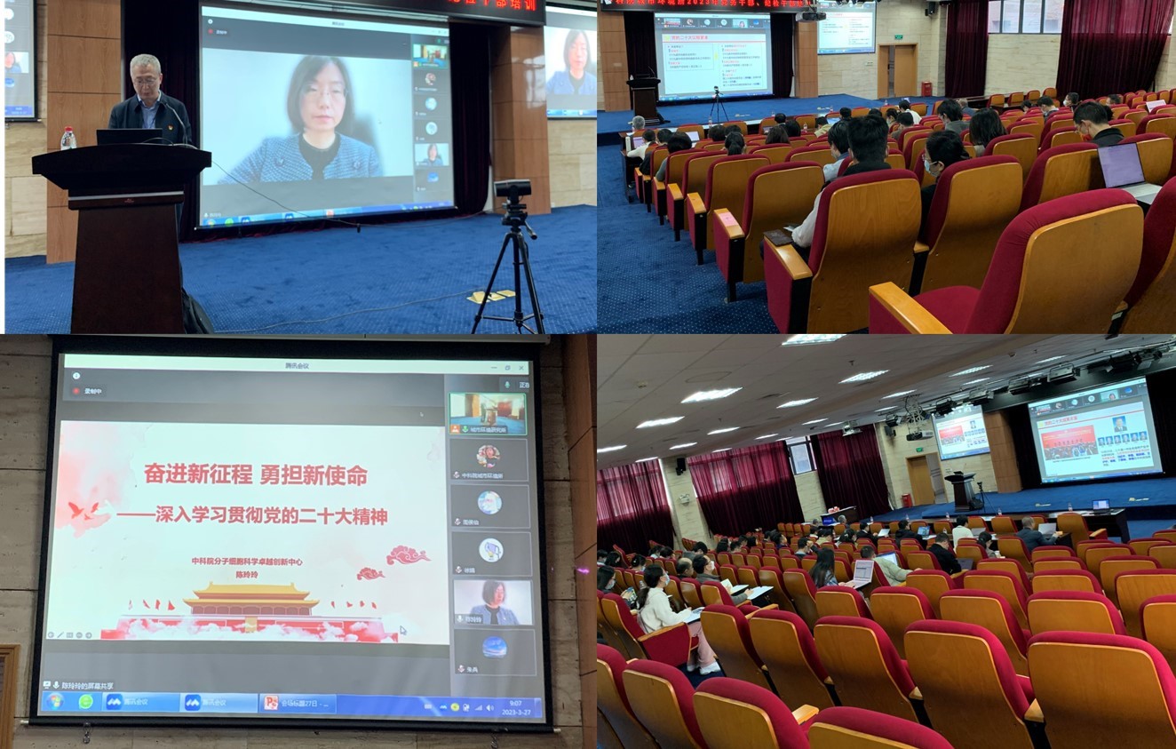 3月27日,邀请党的二十大代表、全国三八红旗手,来自中科院分子细胞科学卓越创新中心陈玲玲研究员作题为《奋进新征程,勇担新使命—深入学习贯彻党的二十大精神》的报告,陈玲玲研究员通过分享其参加党的二十大的经历,鼓励广大女职工作为新时代科学家,要发扬以爱国主义为底色的科学家精神,始终保持深厚的家国情怀和强烈的社会责任,勇于创新、不懈奋斗。