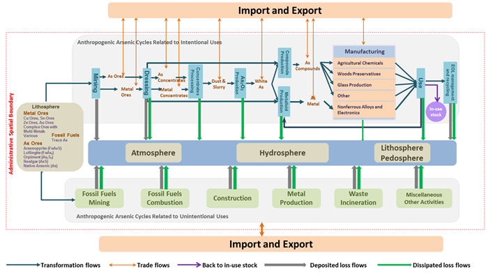 图来源:Chen, W.-Q.*; Shi, Y.-L.; Wu, S.-L.; and Zhu, Y.-G.* Anthropogenic Arsenic Cycles: A Research Framework and Features. Journal of Cleaner Production. 2016, 139:328-336.