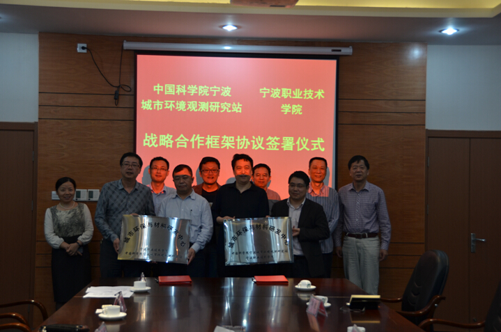 5月18日,中国科学院宁波城市环境观测研究站与宁波职业技术学院签署战略合作框架协议并共建“工业环保与合成材料联合研发中心”。