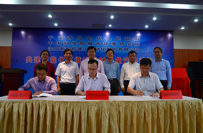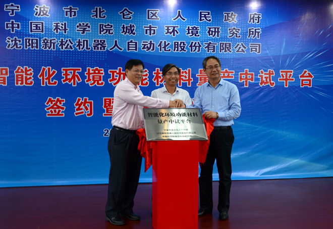 10月13日,由宁波市北仑区人民政府、中国科学院城市环境研究所和沈阳新松机器人自动化股份有限公司共建“智能化环境功能材料量产中试平台”的签约暨揭牌仪式在中科院宁波城市环境观测研究站举行。