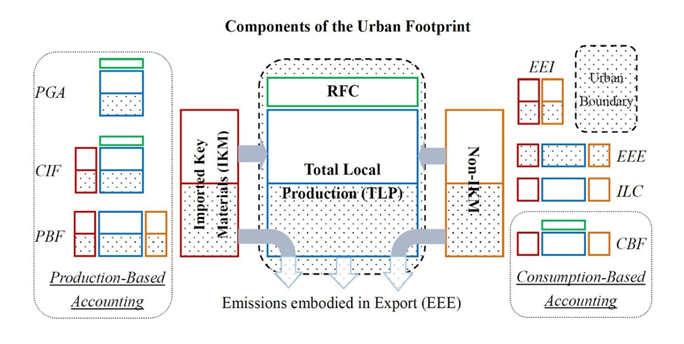 城市排放了全球70%的温室气体,并从经济、社会和政策上都具有实施减排行动的优势。城市的生产和消费活动会延伸到上游的腹地和下游的消费者,通过进口能源、食物、水和建筑材料等主要基础原材料进行生产和加工,最终产品被本地和外地消费者消费。目前针对城市尺度的碳排放和碳足迹研究缺乏对城市系统完整的刻画,进而对低碳城市的评价、比较和减排策略的分析不够精确和深入。