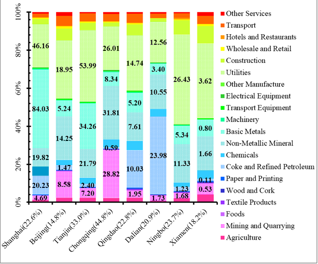 中国科学院城市环境研究所城市生态过程与调控研究组(崔胜辉团队)建立完整的评价模型,用自下而上与自上而下相结合的方法对城市边界内碳排放、进口隐含碳和出口隐含碳进行量化,并根据不同的政策相关性定义了4种主要的碳足迹和4个低碳城市的衡量指标,对城市碳足迹的共同特征进行初步总结。通过选取北京、厦门等8个发展迅速、贸易活跃的城市作为案例,研究结果表明:(1)通过比较四种核算边界的碳足迹,中国的城市进口隐含碳主要来源于中国大陆其他发展中或欠发达地区进口能源、钢铁、水泥等初级产品,而出口隐含碳的主要去向为中国大陆、北美、欧洲等地区的城市碳密集型产品和职能服务。(2)对城市低碳程度的评价需要综合城市的清洁生产程度、低碳消费程度、进出口贸易隐含碳平衡和进出口贸易的碳强度四个方面。(3)建筑业是城市最大的碳消费部门,从电力、非金属材料部门、主要金属部门等消费大量隐含碳。(4)城市上游进口地区生产效率对城市的清洁生产具有决定性的影响,提高中国大陆和其他发展中国家的生产水平,可以减少主要基础原材料的碳强度,进而从生命周期角度提高城市的生产效率。本研究所建立的方法可以很好的复制到其他有编制投入产出表的城市的碳足迹研究,并为城市化过程中的城市碳足迹基本特征提供对比标准。