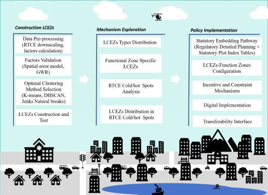 实现城市低碳化转型是全球应对气候变化的核心挑战。当前研究虽已认识到城市空间形态对居住和交通碳排放具有重要影响,但其复杂的尺度依赖性和空间异质性,使得传统基于单一阈值的规划方法难以在实践中精准落地。针对这一科学难题,研究团队提出了“局部碳排放分区”的新概念,旨在将复杂影响机制转化为可操作的规划单元。
