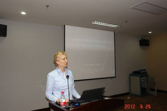 4月24日,应朱永官研究员邀请,Trends in Plant Science 主编Susanne C. Brink博士访问城市环境研究所,并做了题为‘High-impact publishing in the 21st century – a Cell press perspective’的学术报告,报告中详细介绍了Cell press 旗下的一些高影响力期刊,并着重介绍了Trends in Plant Science的投稿及审稿等过程。报告结束后Brink热情回答了在场师生提出的问题,现场交流气氛浓烈。