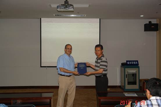 5月28日上午,中国科学院“外国专家特聘研究员”获得者、美国卡里生态系统研究所(Cary Institute of Ecosystem Studies)资深研究员Peter Groffman博士访问城市环境研究所。副所长陈少华向Groffman颁发“中国科学院外国专家特聘研究员”证书。