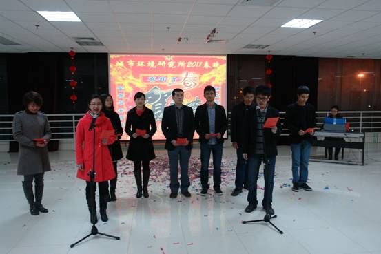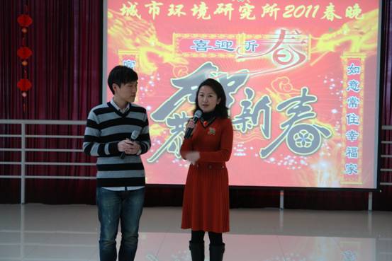 1月21日晚,城市环境研究所全体师生250多人欢聚一堂举行春节联欢晚会。学生组合表演的相声《我爱城环所》幽默地道出了研究所科研、学习以及生活的真实状态;独唱《我的骄傲》唱出了学子希望成为研究所骄傲的激情;师生联合演绎的《IUE2011新闻发布会》,对赵景柱书记、朱永官所长两位领导惟妙惟肖的模仿引来全场阵阵爆笑;歌舞剧《童年的回忆》、配乐诗歌朗诵《满载希望,扬帆远航》等晚会节目精彩纷呈,欢笑声和掌声不断。