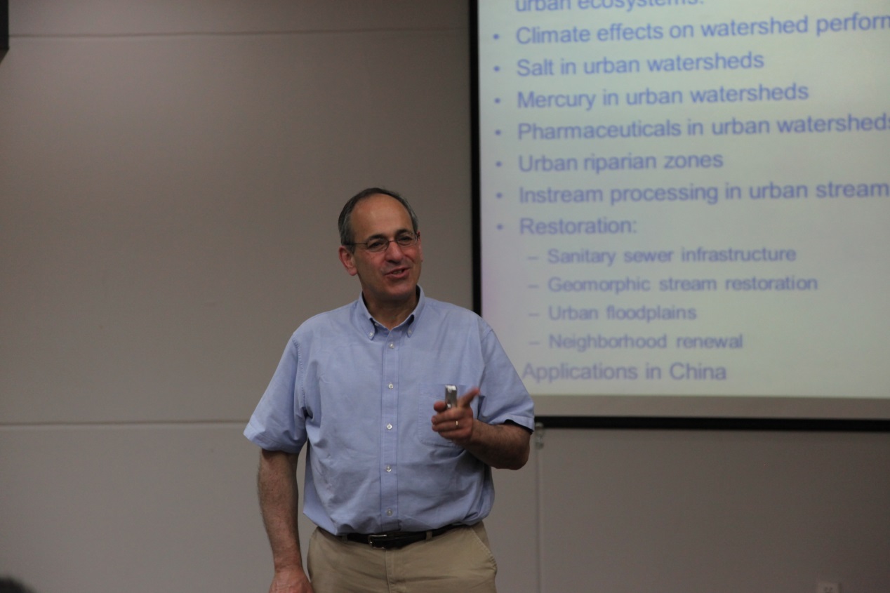 Peter Groffman博士的报告以美国巴尔的摩城市生态系统研究站为例,详细介绍了流域研究方法在城市生态系统研究中的应用及其重要性;同时还以巴尔的摩城市河流氮污染现状和生态修复为例,介绍了城市河流氮循环的研究成果和生态修复措施。